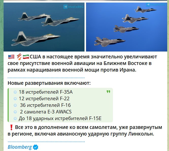 Тучи над Ираном (на фоне не особо удачных переговоров) неумолимо сгущаются.