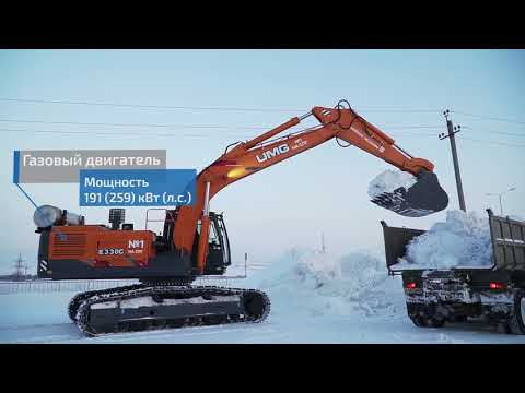 Новая версия гусеничного экскаватора, разработанная специалистами «РариТЭК» на базе гусеничного экскаватора Е330С, оборудованного газовым двигателем Yuchai мощностью 259 л.с. На противовесе экскаватора установлена криогенная ёмкость (криобак) объемом в 500 литров. При сжижении объем природного газа уменьшается в 600 раз, что позволяет установить топливную ёмкость меньшего размера. Именно благодаря данной особенности СПГ, появляется возможность расширить сферу его применения.