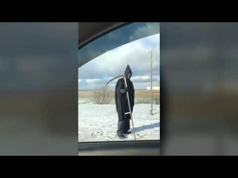 На обочине одной из трасс развернулся целый перформанс: сразу несколько сотрудников ГАИ выстроились в ряд, показывая увеличение скорости на дороге, а пиком стала «Смерть с косой», приветствующая проезжающих мимо водителей.