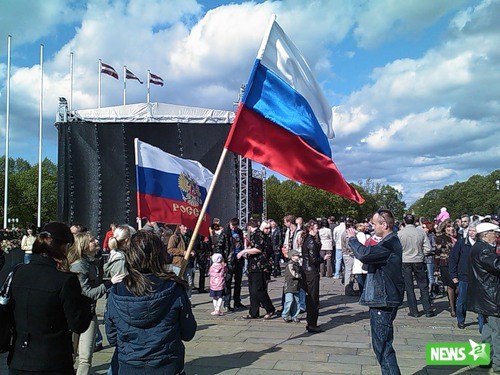 это нормально, в Прибалтике другая специфика и трактовка символики и флагов. Под русскими подразумевают русских, беларусов, украинцев и др. кто помнит и чтит этот праздник.