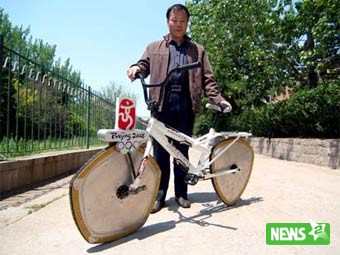 Отставной офицер из китайского города Циндао соорудил и запатентовал велосипед с "угловатыми" колесами, сообщает The Times. Переднее колесо представляет собой пятиугольник, заднее – треугольник.