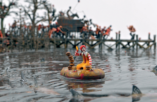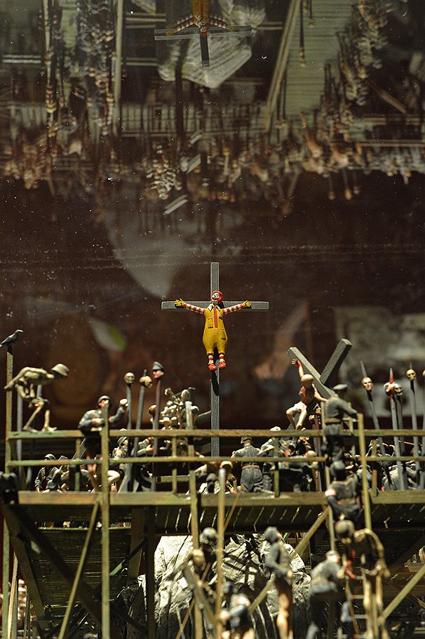 Нацисты, кресты и макдональдс — блин, ну что тут непонятного? ) В пространстве видеосимволов, клипов, роликов, три-дэ видео мы прямо живём последние несколько лет, так что это современное искусство для нас и не такое уж современное. ))