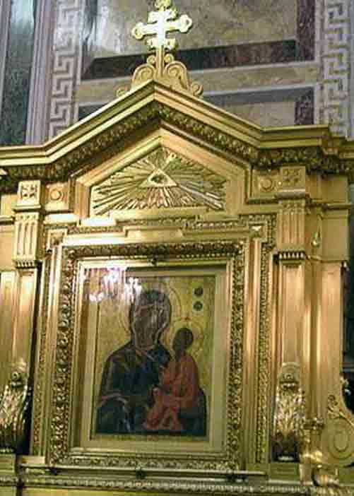 Самый известный в Москве и в России храм Христа спасителя имеет на каждом кресте по 12 шестиугольных звёзд Давида, звёзд имеющих в Каббале тайное значение, и перевёрнутый рогами вверх серп ущербной луны, тоже являющийся специальным символом черной магии. Конечно же иудохристианские попы говорят, что мол это не серп, а чаша (чаша изобилия) однако нормальный человек способен отличить плоский серп от круглой чаши (которая к тому же должна быть наполнена дарами земли, если это чаша изобилия).