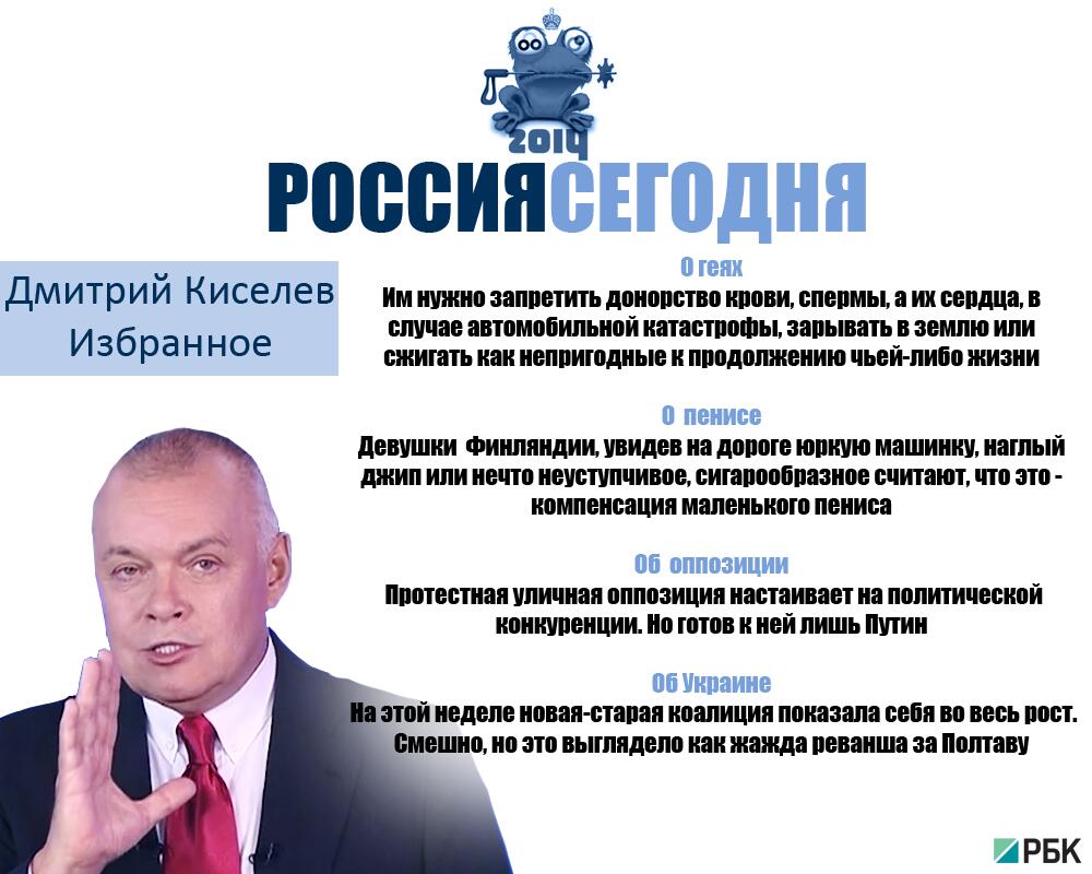 До этого РИА Новости были самым инновационным и технологически развитым СМИ в России. Каждый рубль бюджетных денег был виден в их проектах. Кто угодно. Хоть Доренко, но не Киселев. Тем более сейчас. Это просто бред. Это безумие.