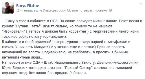 А тем временем, Борис Филатов, ставленник олигарха Коломойского
