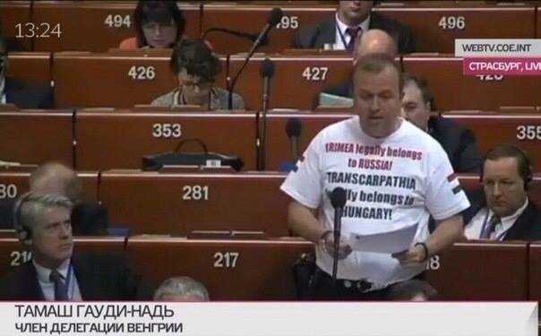 А если русины отделятся, не факт, что они к России присоединятся — их, как минимум, в Венгрии хотят. (См. надпись на футболке)