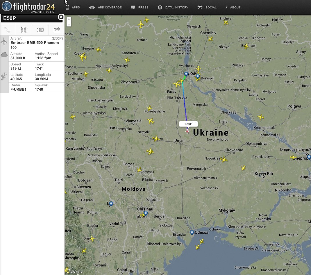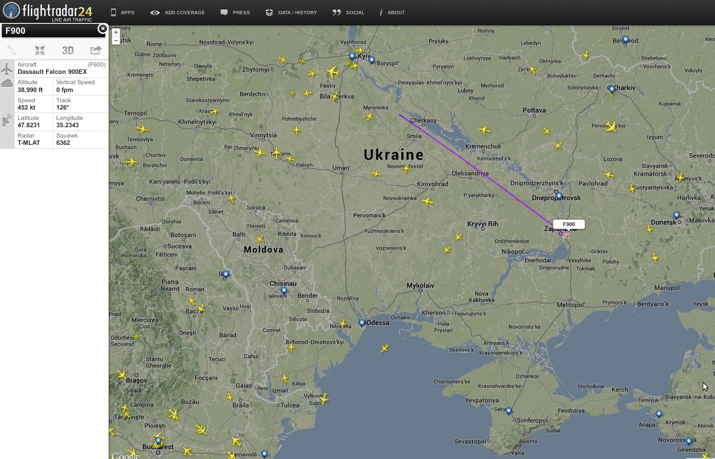 Чей-то бизнес-джет Falcon D900EX вылетел из Киева неизвестно куда-то. Без указания маршрута.