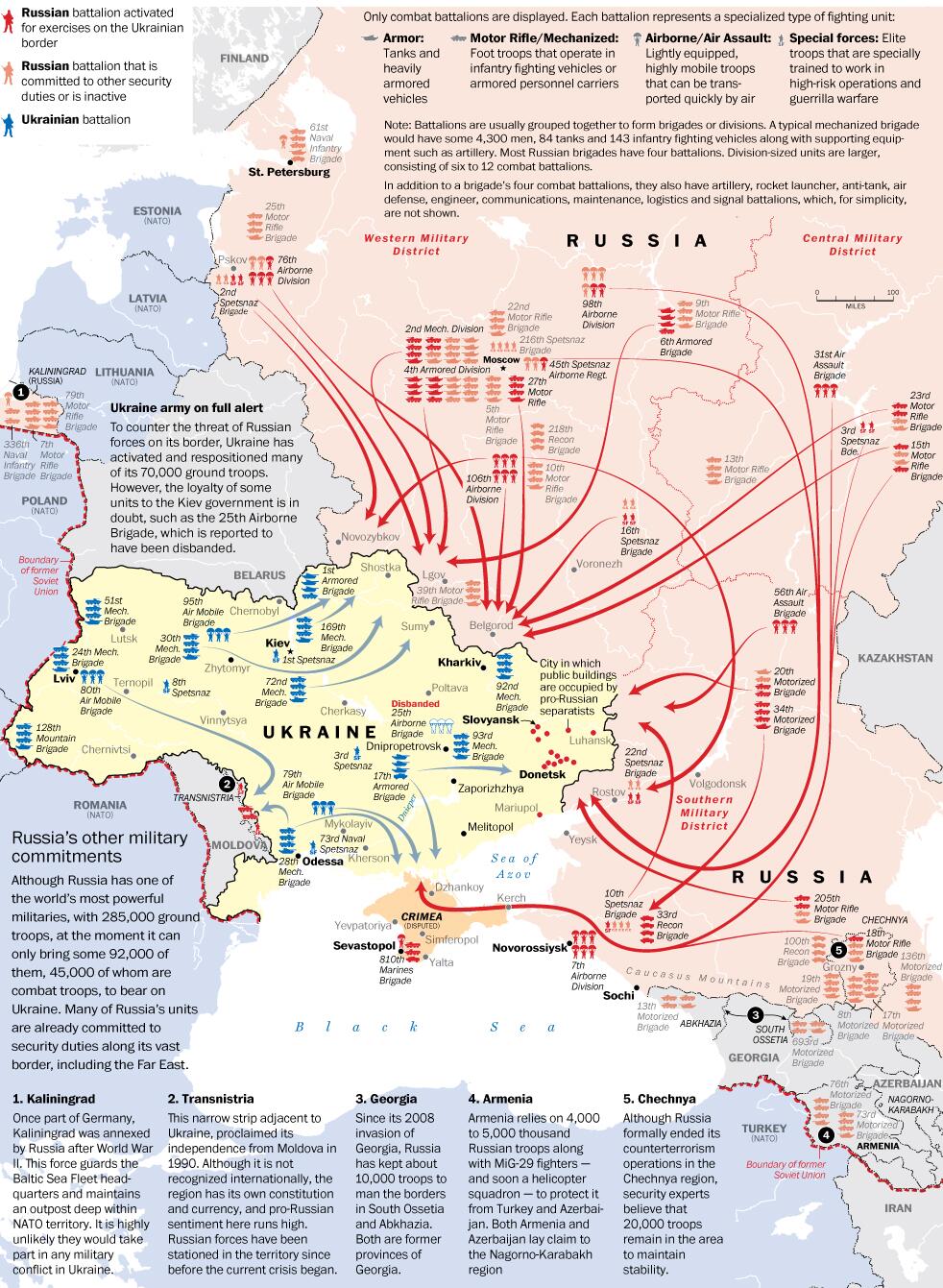 В статье собраны все перемещения подразделений ВС РФ и ВС Украины. И если посмотреть на карту действительно, первые и вторые стягивают войска к границам.