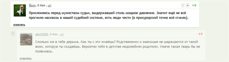 Поддерживаю! Я собственно так и делаю. Отвечать им — значит кормить их. Я автоматом минусую их, не читая их высер. Предлагаю так и делать впредь. Не отвечая минусовать, чтоб закрыть. А то бывает заходишь посмотреть комменты по интересной новости, надеясь услышать мнение знающих людей, а там одно гавканье, слово-за-слово-цепляние. Каждый пытается оставить за собой последнее слово, и превращается все в «сам дурак». Не надо отвечать им или оправдываться. Было бы перед кем. Ничего хорошего, доброго, вечного от них ждать не приходится. Минус автоматом и идем дальше.