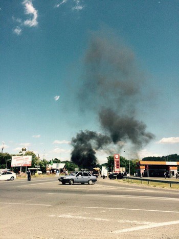 Жители сообщали, что слышны выстрелы из автоматов и взрывы гранат. А около выезда из города загорелась АЗС.