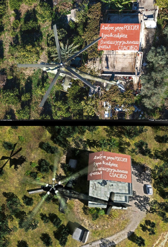 4. четкая тень вертолета и лопастей, дифракцию в школе не проходили.