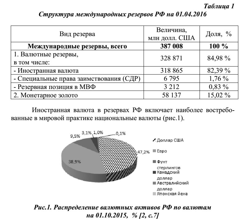 (82,39 % на 01.04.2016), а на монетарное золото – 15 %