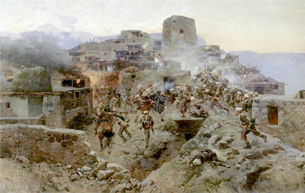 Хаос продлился лишь несколько минут, после чего на топтавшихся под стенами турок и курдов обрушился вал огня. Скорострельные винтовки проделывали бреши в плотной толпе, вопли умирающих смешивались с проклятиями и грохотом. Атака захлебнулась. По заявкам русских, под стенами осталось три сотни тел.