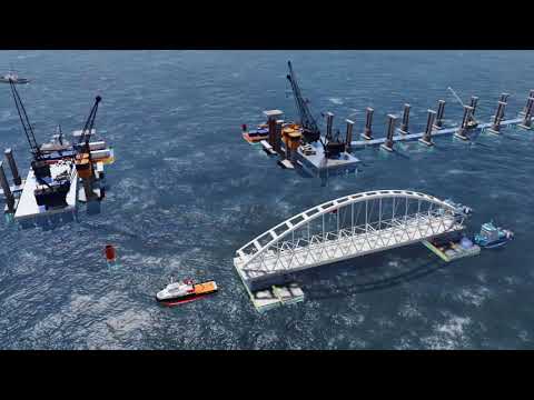 В Керченском проливе устанавливают железнодорожную арку моста весом 6 тыс. тонн. Под Херсоном выложили тризуб из кавунов и дынь.