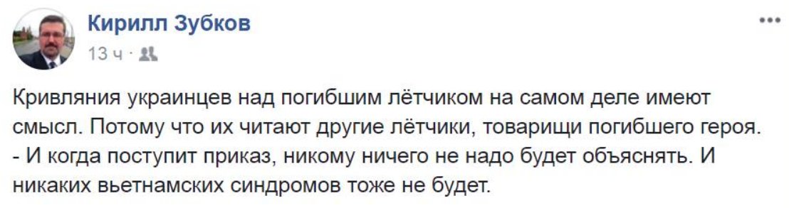 На следующий день он назвал погибшего российского пилота Романа Филипова уроженцем Симферополя. «Он ранее служил в украинской армии и предал родину», — написал Краснопольский. На самом деле Филипов родился в Воронеже, проходил службу в Приморье и не имел никакого отношения к украинским вооруженным силам.
