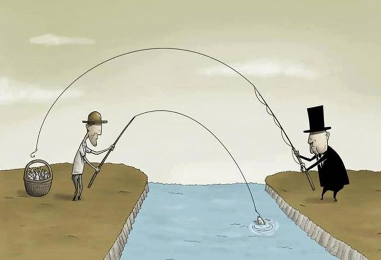 Здесь главное в том, что богатые у бедных рыбу не дали, но научили пользоваться удочкой.