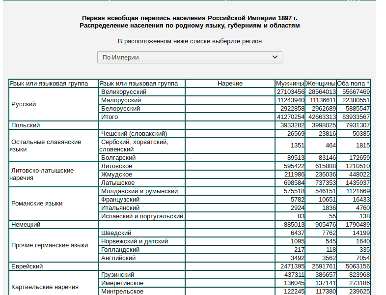Так что близко, косвенные данные, но не 100% совпадение. На счет царских времен — тогда еще не было такого смешения народов, как при СССР, там совпадение будет больше.