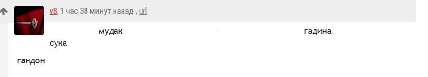 А это что за новоявленный начальник появился, что судит абсодютно неадекватно — мне замечание, а беспредельщику V8, первому начавщему с оскорблений и постоянно всех оскорбляющему — как с гуся вода!? Несправедливо! Юлька, тебя чтоль назначили впередсмотрящей?! Похоже на то...)))