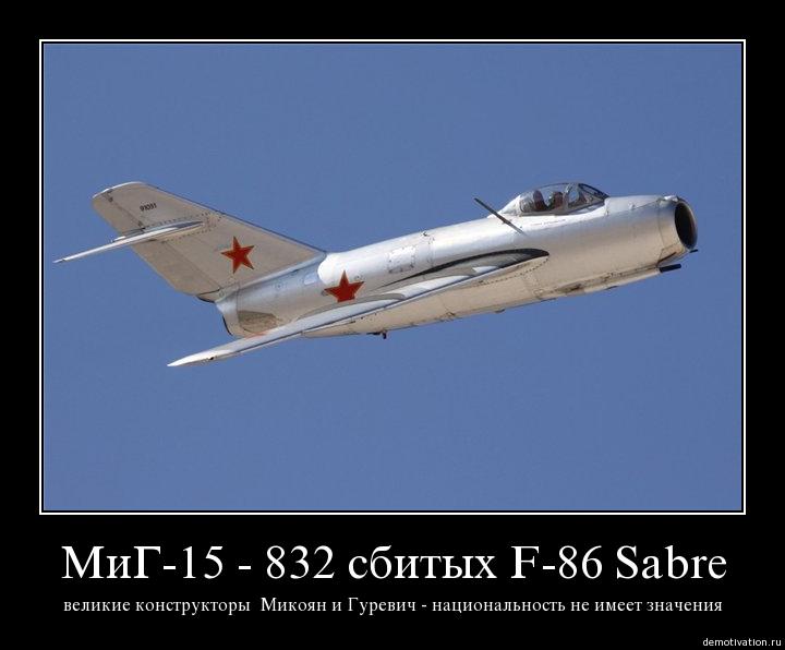 По вопросу использоваемого вооружения на МиГ-15 и F-86. На МиГ-15 было установлено 3 авиационные пушки (2 пушки калибром 23-мм и одна калибром 37-мм), а у Сейбра 6 Браунингов калибром 12,7-мм. Что было лучше, а что хуже писать много не буду лишь скажу что к концу войны в Корее появились модификации Сейбров с 4-мя 20-мм пушками. Так же в ходе ВМВ авиация с пулемётного вооружения плавно перешла именно на пушечное.