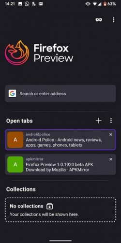 В приложении по умолчанию включена защита от отслеживания действий пользователей: сайты не смогут собирать информацию о вас и использовать её в своих целях. Интерфейс тоже изменился: адресная строка расположена внизу экрана, есть удобный раздел «Коллекции» для хранения закладок и тёмный режим.