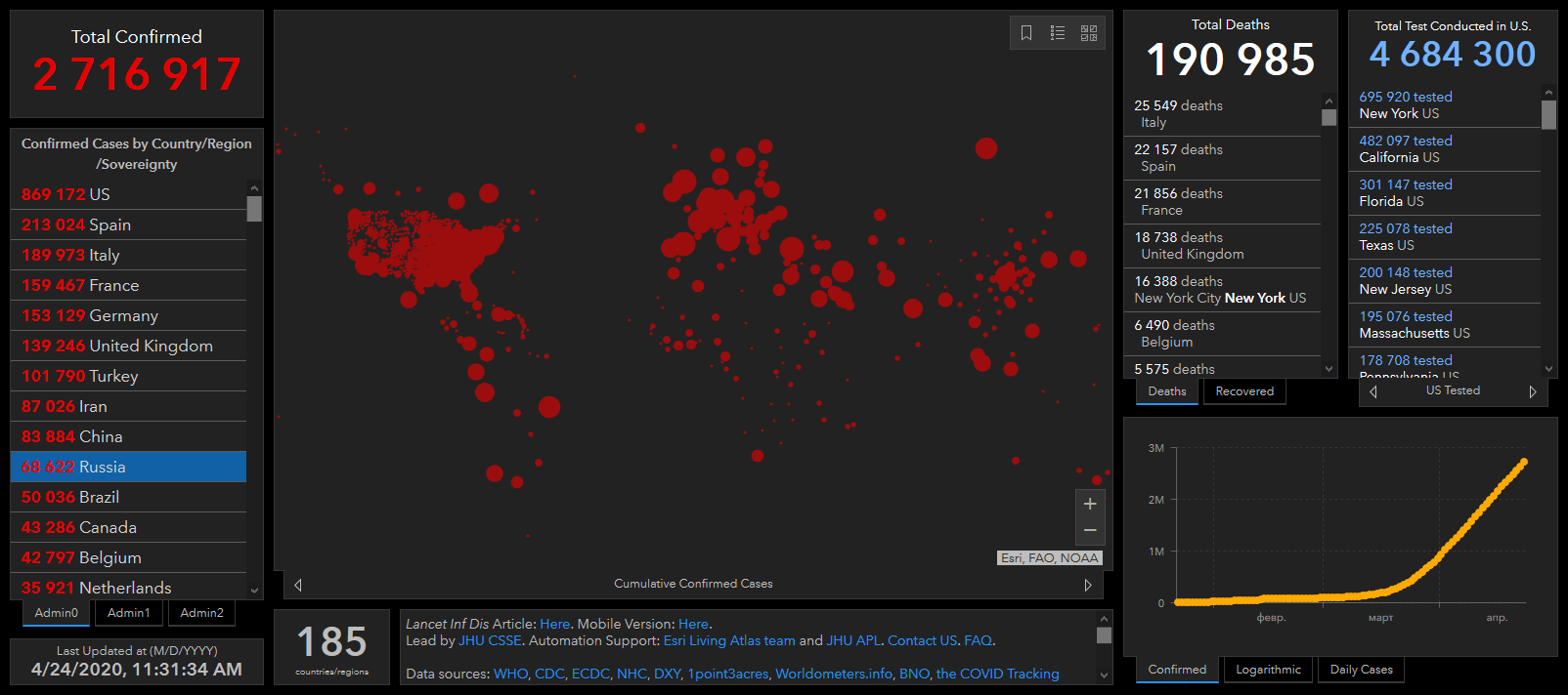 Пандемия затронула почти все страны. По информации ВОЗ, в мире зафиксировано более 2,47 миллиона случаев заражения, свыше 169 тысяч человек скончались.