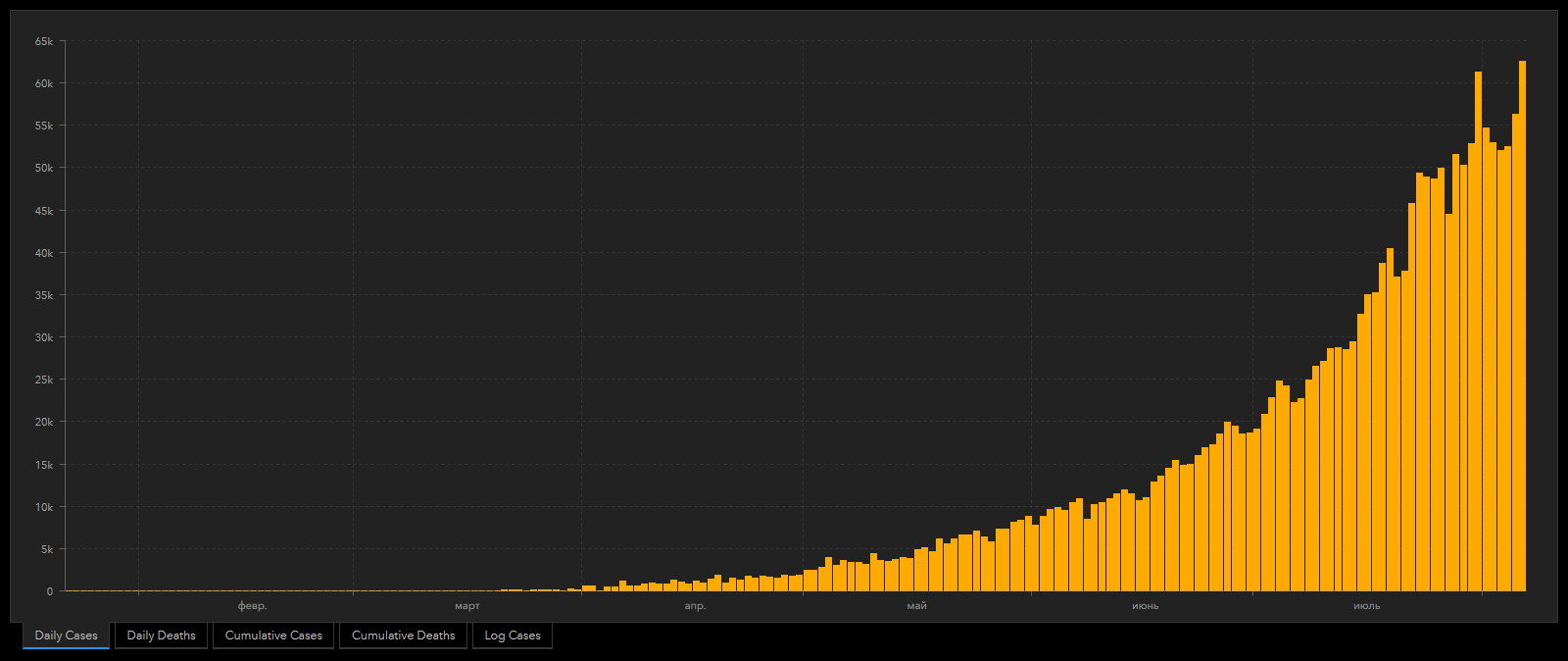 Россия остается на четвертом месте в мире по числу заражений и на 11-м — по количеству смертей. Всего коронавирусом заразились более 19 млн жителей планеты, умерли — 714 тыс. Всемирная организация здравоохранения предупредила об ускорении темпов распространения вируса.