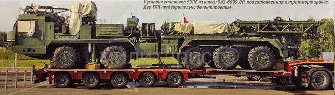 Согласно пояснению к снимку, в кадре — ПУ 55П6 на базе брянского вездеходного шасси БАЗ-69096 с колесной формулой 10х8. Этот тягач выбран в качестве основной машины для С-500. Мощность двигателя 550 лошадиных сил, 33-тонный грузовик способен преодолевать 30-градусные подъемы.