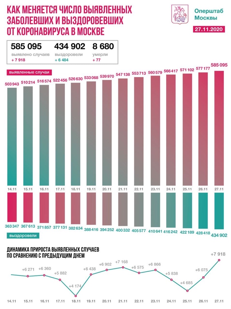 При этом относительно предыдущего дня прирост оказался небольшим — в четверг в штабе сообщили о 3 669 заразившихся. В общей сложности в городе заразились 114 820 человек.