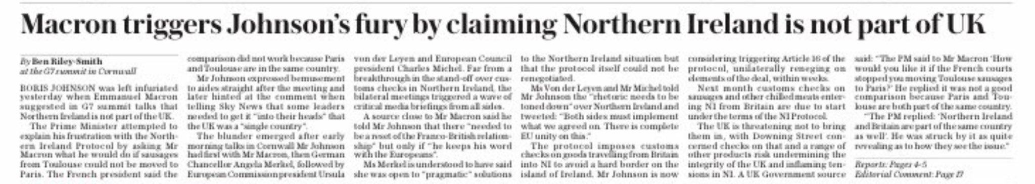 На мой взгляд, главный итог саммита G7 — это признание Францией того, что Северная Ирландия не является частью Великобритании.