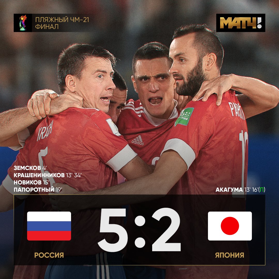 Сборная России по пляжному футболу в третий раз в истории и впервые с 2013 года завоевала золотые медали чемпионата мира. В финальном матче подопечные Михаила Лихачёва нанесли поражение команде Японии со счётом 5:2.