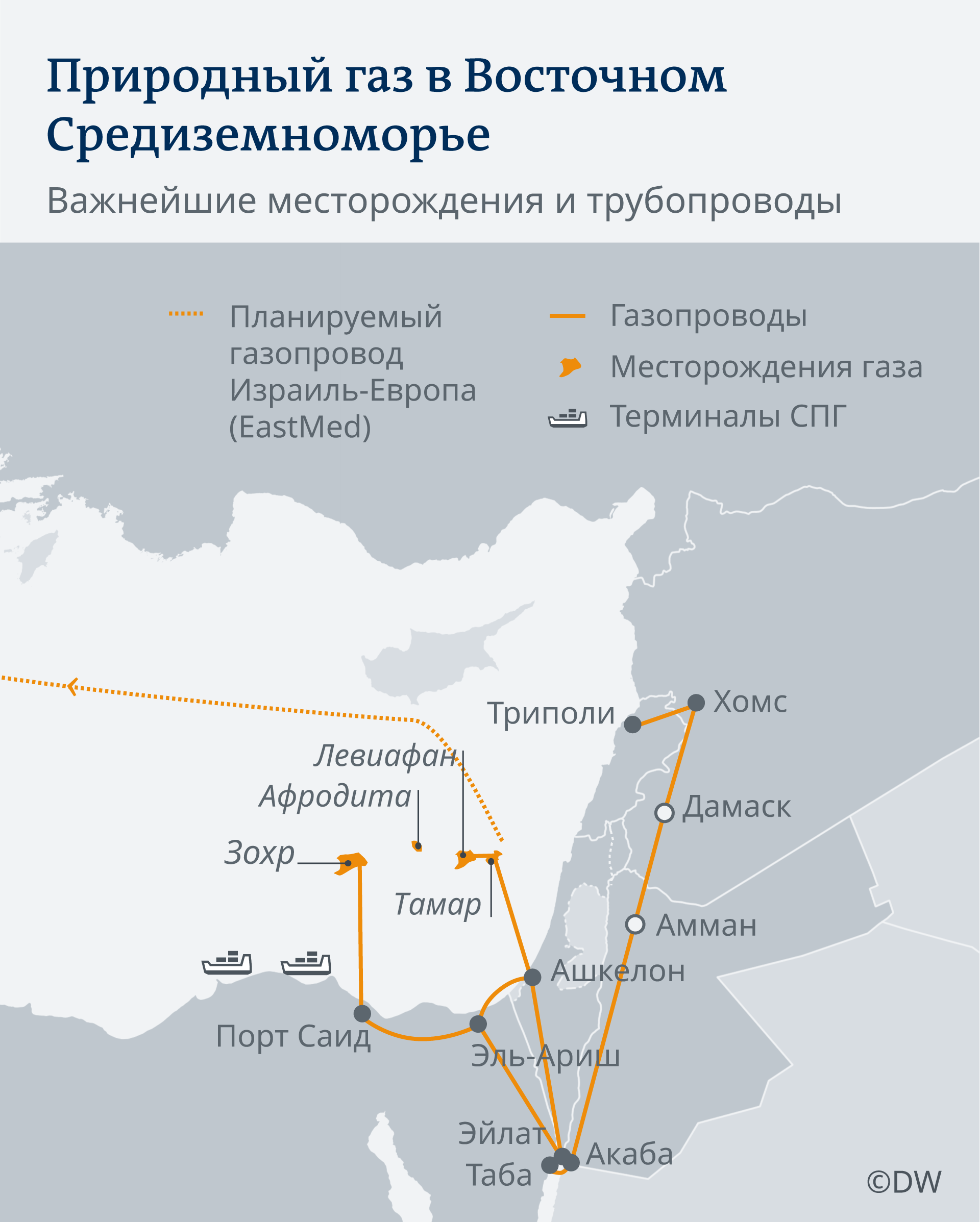 Если же говорить о больших шельфовых запасах газа в районе Восточного Средиземноморья (в водах Израиля, Египта, Кипра и Ливана), то это пока лишь запасы. Их нужно эффективно разрабатывать, а затем наладить экспорт в Европу — и последнее сделать, возможно, будет ой как непросто. Турция (желающая сконцентрировать на себе весь транзит газа с восточного и юго-восточного направления в ЕС) пытается саботировать альтернативные трубопроводные проекты — например, через подписание в 2019 году с подконтрольной ей номинальной ливийской властью соглашения о разделе морских вод.