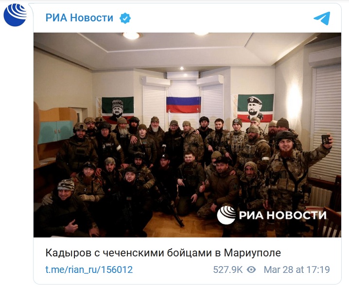Кадыров заслужил. Поехал отмечать в Мариуполь. Повторю: не стол в Барвихе накрывает, на войну поехал, отмечать присвоение звания. Что тут скажешь ...