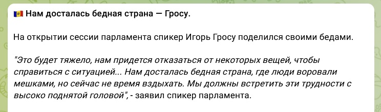 «Нам досталась бедная страна.» — сказал Гросу. «К сожалению очень мало осталось чего украсть» — добавил он.