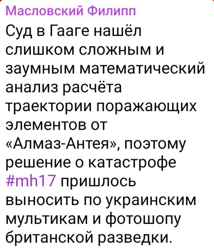 Но и этого явно заказного и лживого заявления Гаагского суда по МН17 будет и уже недостаточно.