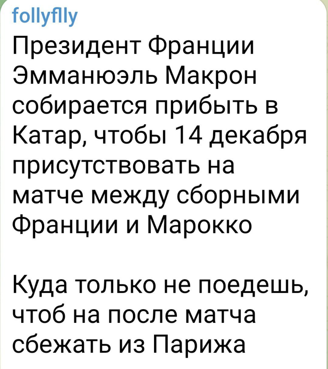 В полуфинале сборная Франции сыграет с командой Марокко. Встреча пройдет 14 декабря на стадионе «Эль-Байт». Марокканцы на стадии четвертьфинала одолели португальцев (1:0) и стали первой африканской сборной, вышедшей в полуфинал чемпионата мира. В другом полуфинале, который пройдет 13 декабря, встретятся команды Аргентины и Хорватии.