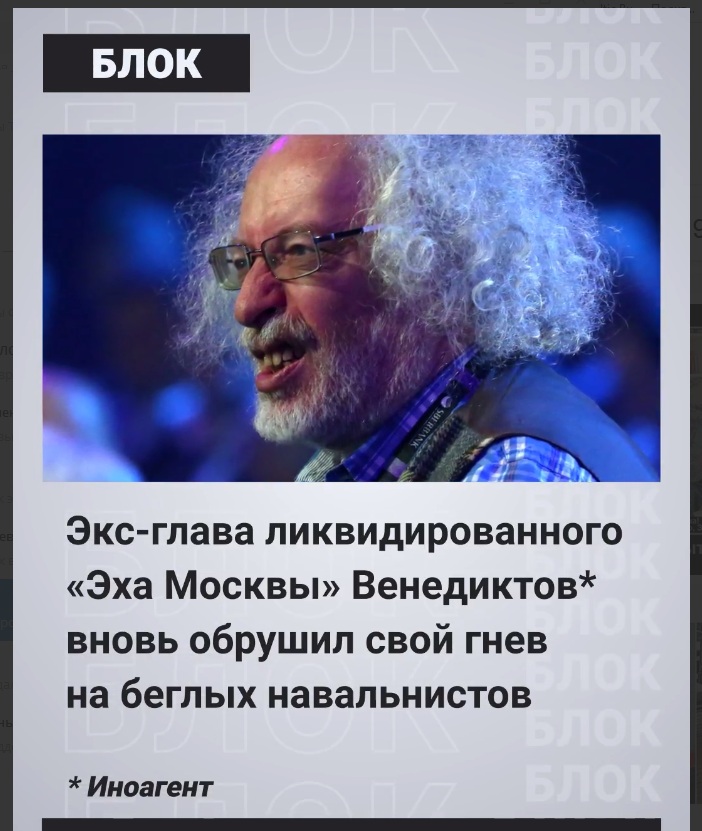 Тот же Венедиктов* не раз на это указывал, обвиняя навальнистов в связях с «охранкой». Этим объясняется ненависть к нему Волкова* & Co.