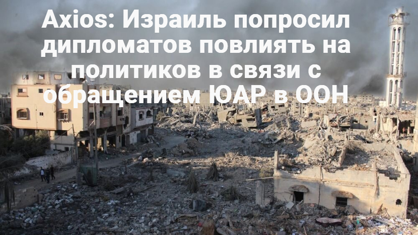 Израильский МИД распространил телеграмму к посольствам, в которой инструктирует их о необходимости оказать влияние на политиков и дипломатов в странах пребывания, чтобы они сделали заявления против обращения ЮАР в Международный суд ООН, в котором Израиль обвиняется в геноциде. Об этом написало издание Axios, в распоряжении которого оказалась копия этой телеграммы.
