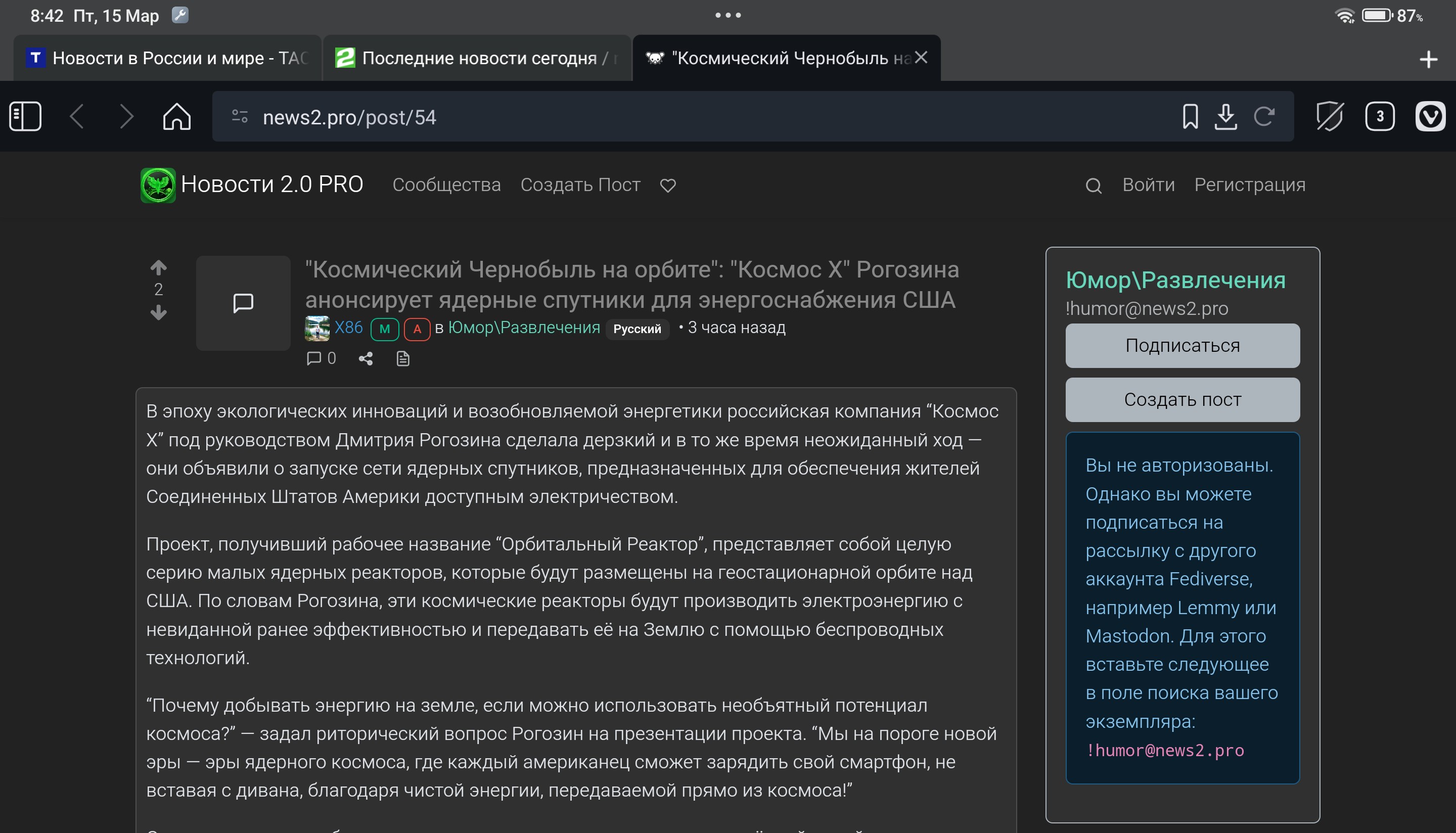 компания “Космос Х” под руководством Дмитрия Рогозина объявили о запуске сети ядерных спутников, предназначенных для обеспечения жителей Соединенных Штатов Америки доступным электричеством