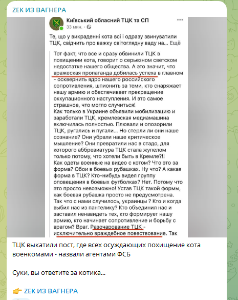 «То, что в похищении кота все и сразу обвинили ТЦК, свидетельствует о тяжелом мировоззренческом пороке нашего общества», — посетовали представители украинского военкомата, назвав это «худшим, что вообще могло произойти».