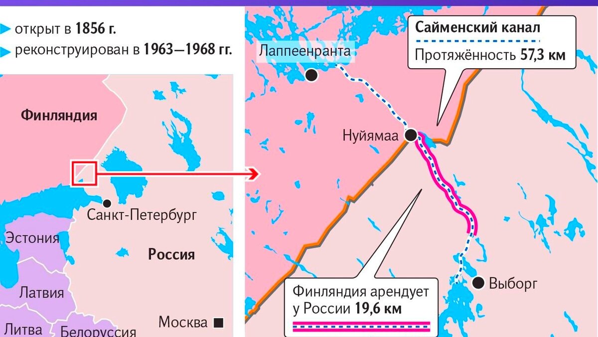 Протяжённость Сайменского канала составляет 43 км, почти половина водной артерии находится на территории, которую Финляндия арендует у России с 1962 года.