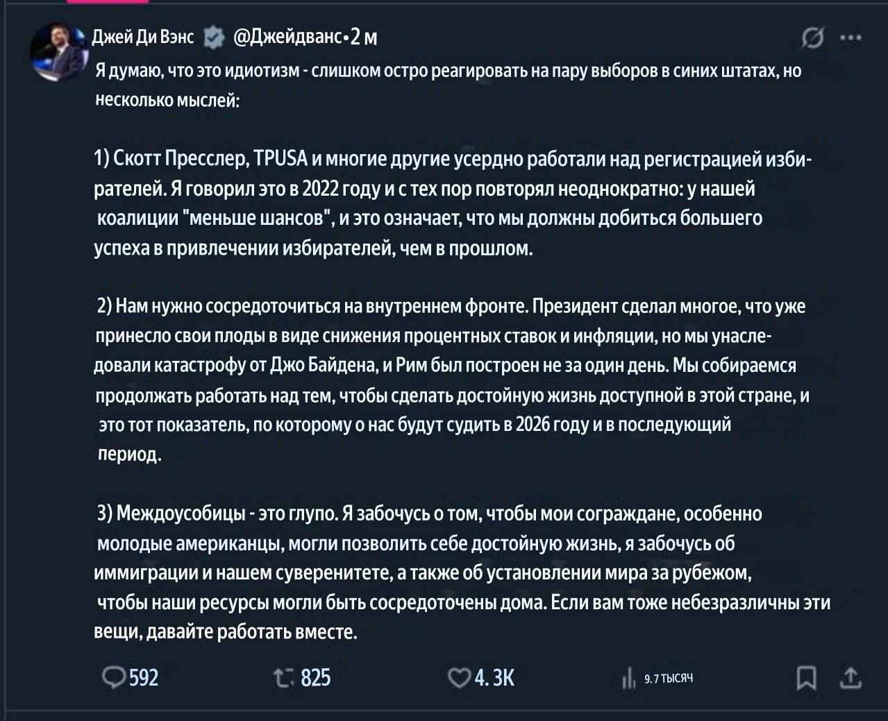 Символично, что происходит это в родном городе Трампа. Последний обещает дать бой “мамданизму”, разговоры даже идут о введении войск в Нью-Йорк, если избранный мэр будет блокировать реформы Трампа. Но в любом случае Мамдани станет лицом движения сопротивления Трампу — в ходе речи тот призвал воевать с “олигархией и автократией” в Вашингтоне.