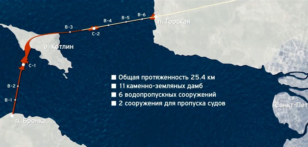 Приступили к строительству Дамбы еще в 1979 году. Она должна была пройти через Финский залив от Сестрорецка через остров Котлин – ныне Кронштадт — до порта Бронка.