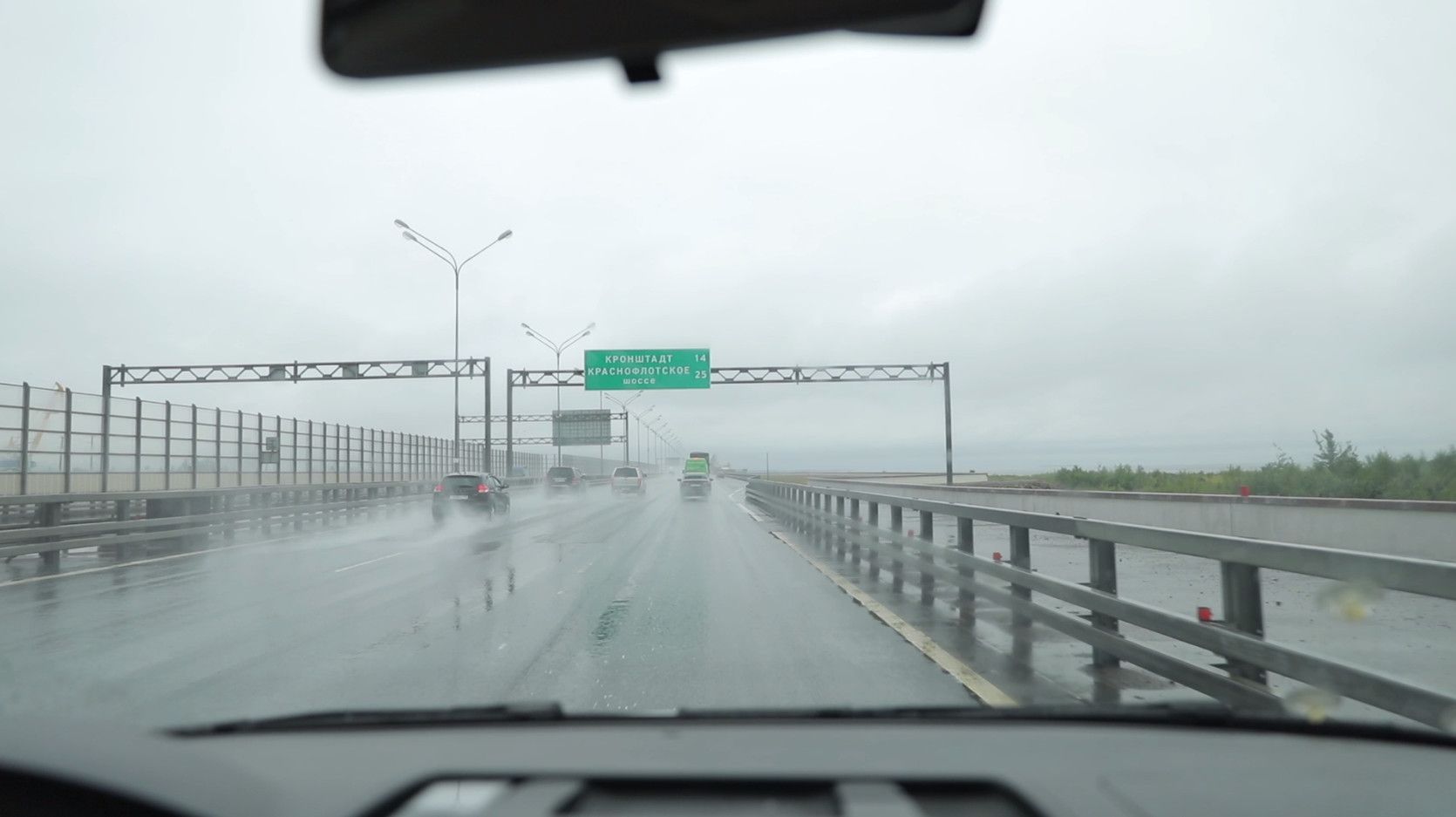 По дамбе проходит Петербургская кольцевая автодорога. Самая необычная ее часть — тоннель. Нижняя точка находится на отметке минус 28 метров. Машины едут два километра под водой.