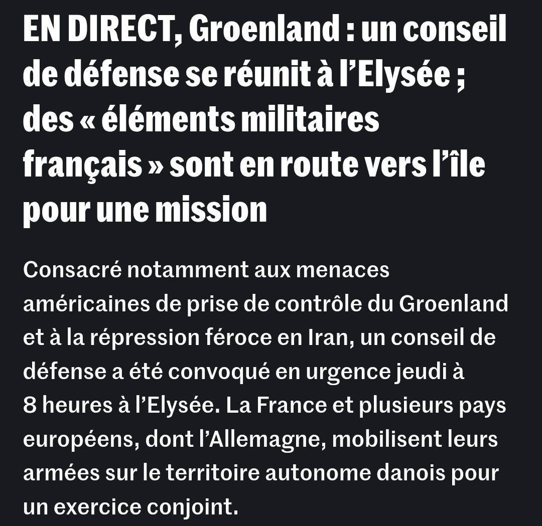 Франция тоже посылает контингент в Гренландию. Количество не сообщается, но я думаю, что человек десять‐двенадцать. Силища собирается.