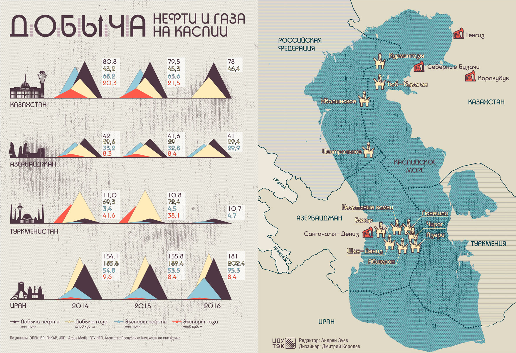 Среди стран Каспийского моря Азербайджан имеет наиболее давние традиции добычи нефти и газа. Основные объекты углеводородной энергетики были разведаны в 1950е годы, среди прочих и сверхкрупное газоконденсатное месторождение ШахДениз. У Азербайджана не было проблем с преемственностью кадровспециалистов в нефтяной сфере, и он смог извлечь выгоду из того колоссального опыта, накопленного в отношении нефте и газоносных регионов Каспийского моря. В начале XX века большинство азербайджанских нефтяников были русскими и персами, азербайджанцы составляли только пятую часть рабочей силы.