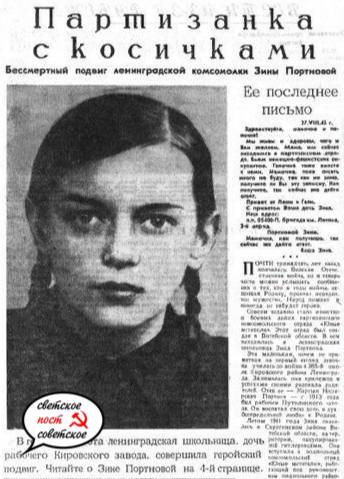 20 февраля 1926 года родилась Зина Портнова, партизанка, разведчица, Герой Советского Союза