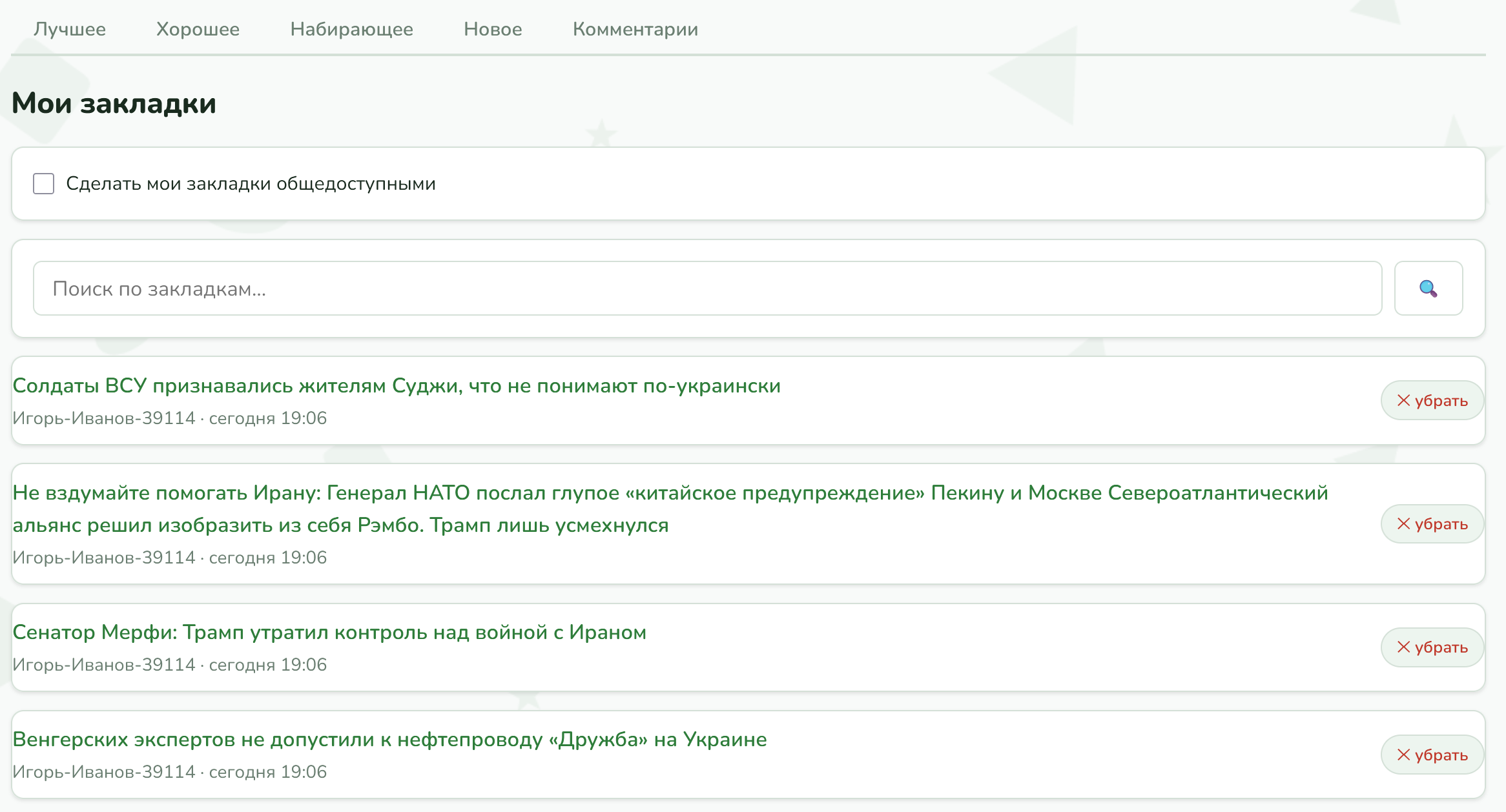 по закладкам и поиск по новостям