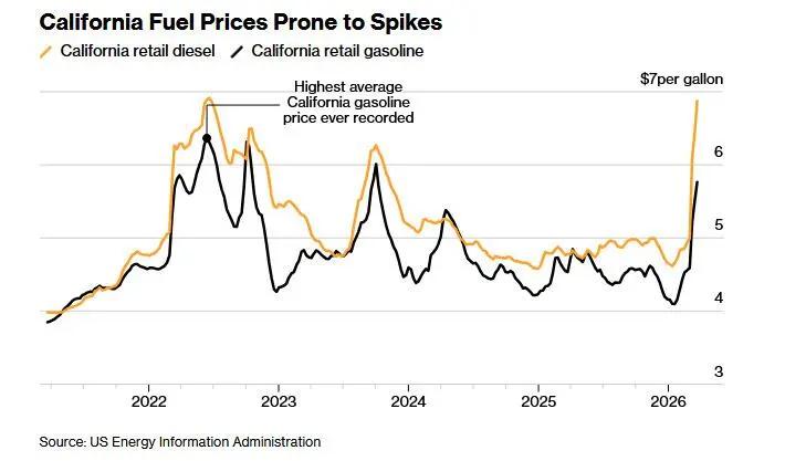 Топливный кризис накрывает западное побережье США. Калифорния — крупнейший американский штат с населением в 40 миллионов человек — столкнулась (https://www.zerohedge.com/energy/chevron-warns-california-facing-historic-fuel-crisis-diesel-hits-record-7) с острым дефицитом дизеля и авиационного горючего. Да и стоимость обычного бензина уже близка к пикам 2022 года.