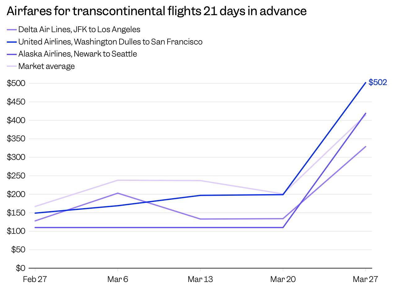 Для сравнения — в свой самый успешный год United Airlines заработал менее 5 миллиардов долларов чистой прибыли. Расходы на горючее — вторая статья расходов авиакомпаний после трат на сотрудников. В такой ситуации им придётся сокращать рейсы и резко повышать стоимость билетов.