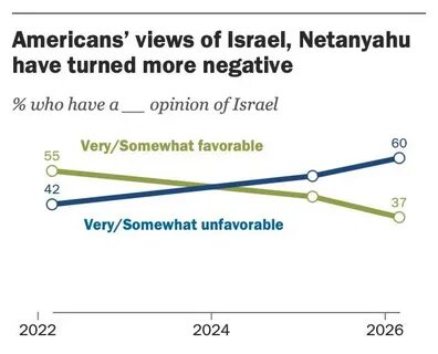 Фиаско Трампа в Иране будет иметь долгосрочные политические последствия не только на внешнем контуре, но и внутри США. Впервые в американской истории аж 60% населения стали негативно воспринимать Израиль (https://www.pewresearch.org/short-reads/2026/04/07/negative-views-of-israel-netanyahu-continue-to-rise-among-americans-especially-young-people/). В первую очередь за втягивание Америки в войну с Ираном.